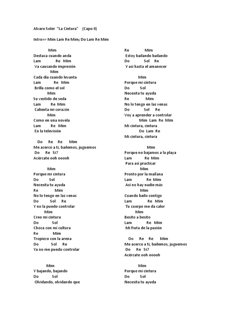 Alvaro Soler La Cintura Spanish Lyrics English Translations Translate Institution Cevirce
